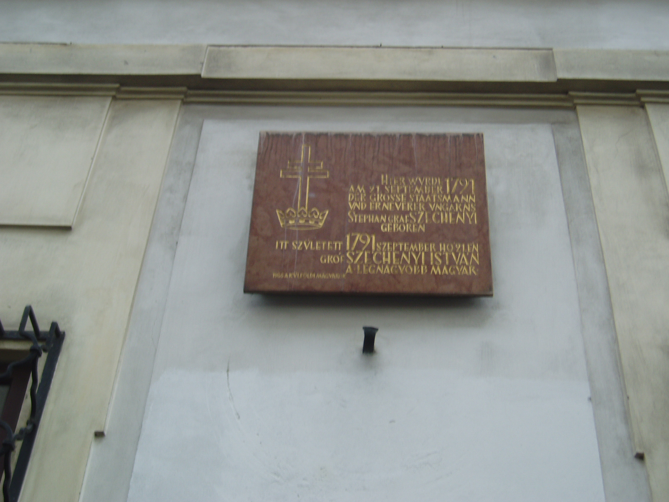 Mint az emléktáblán is olvasható, ebben a városi palotában született Széchenyi István.
