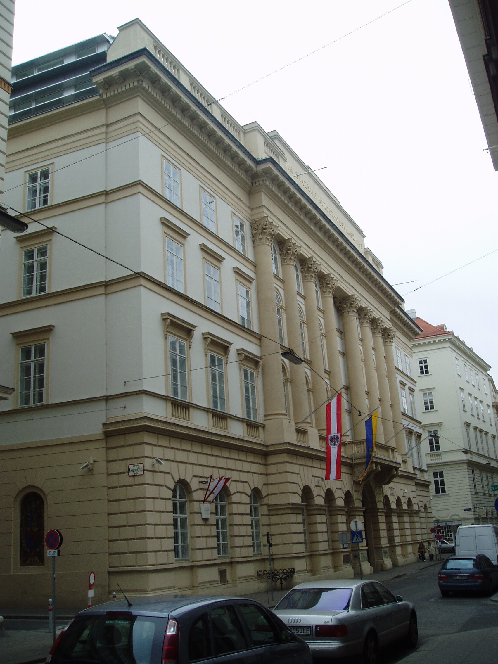 Nyilvános 1434 | 3098 | Rövid leírás | Teljes leírás (609 B) | Herrengasse 13. Landhaus (a régi országház) A hatalmas palota építési ideje nem ismert, de az 1500-as években már állt. Azóta többször átépítették, jelenlegi klasszicista köntösét 1832-48 között kapta. Ebben a palotában ült össze évszázadokon keresztül, I. Miksa uralkodása óta az alsó-ausztriai rendi gyűlés. Ma az alsó-ausztriai kormány hivatala. Klasszicista Festsaal-ja (ünnepi terem) nevezetes hangversenyek színhelye volt. Falai között megfordult Schubert, Beethoven, s itt adta első bécsi koncertjét egy 12 éves magyar csodagyermek, Liszt Ferenc. |