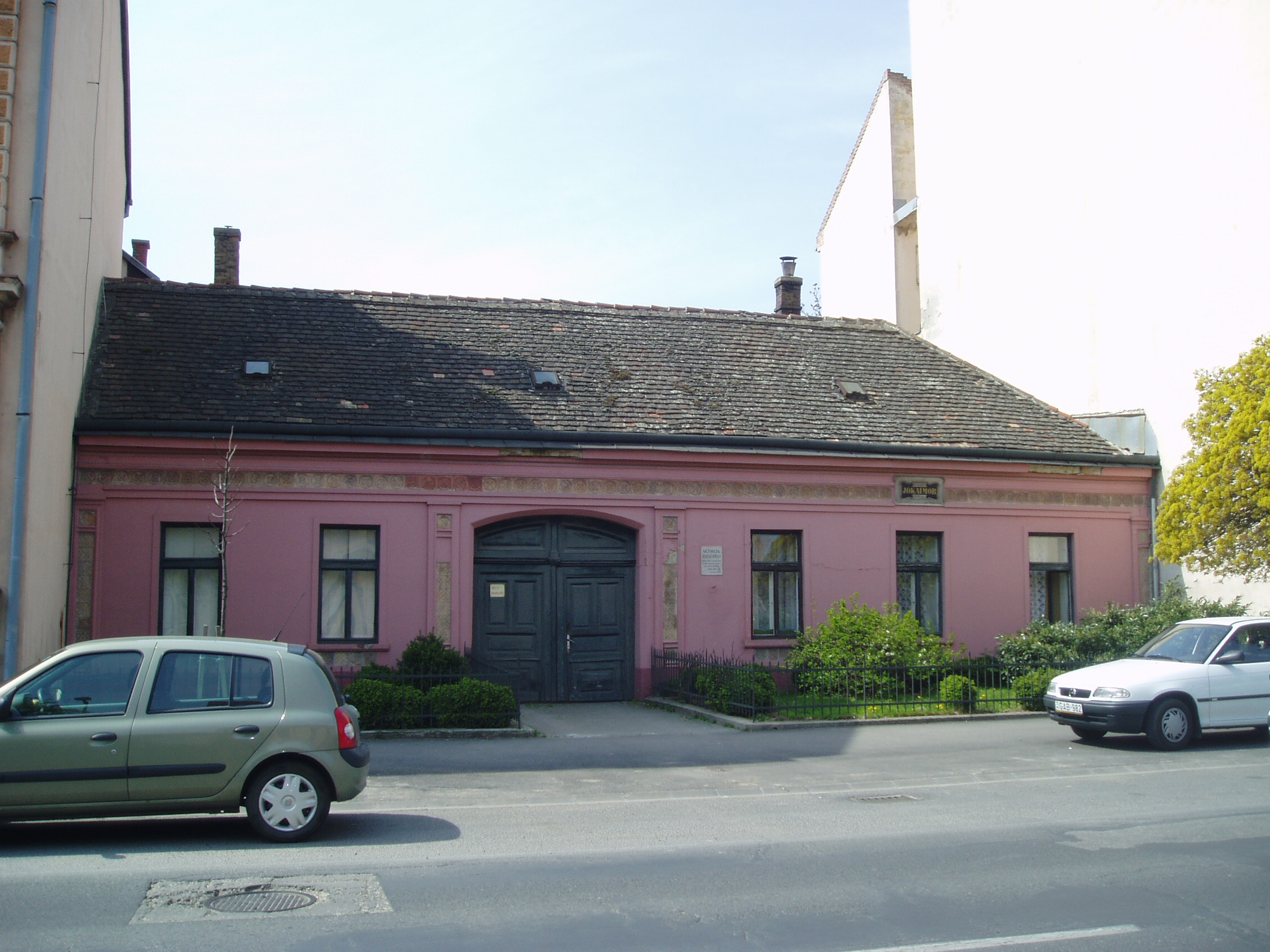 Nyilvános 851 | 1791 | Pápa, Jókai utca 13. | Klasszicista stílusban, 1820 körül épült egyemeletes lakóház. Homlokzatán emléktábla jelzi, hogy pápai diák korában, 1841/42-ben itt lakott Jókai Mór. Jókai - akkor még Jókay - Mórt sógora, Vály Ferenc hozta Pápára 1841. aug. 21-én különbözeti vizsgát tenni, ami után a fiú a Kollégium (lásd: Pápa, Petőfi u. 13.) diákja lett. Nov. 1-jén költözött be bebbe a házba, Klára Mihály otthonába, kosztosdiákként. (Még idős kori levelében is emlegette a "derék" Klára Mariska főztjét.) Együtt lakott Kerkapoly Károly későbbi filozófiaprofesszorrel és pénzügyminiszterrel és egy Pap Dénes nevű iskolatársával. Az itt töltött időben Jókai jeles előmenetelű diák volt. Tanulmányai mellett portréfestéssel is foglalkozott. Visszavonult, szolíd életet élt, amivel táraitól kiérdemelte a "Jámbor" becenevet. Ebben gyerekkori betegségének, tüdő-problémáinak is része volt. Lakótársain kívül elsősorban Orlai Petrich Somával barátkozott. Petőfivel 1842-ben ismerkedett meg. Eltérő egyéniségük ellenére hamar jóban lettek, sok időt töltött Petőfiék szállásán (lásd: Pápa, Petőfi u. 11.), de igazi barátság csak a későbbi kecskeméti években alakult ki közöttük. Bár még elsősorban festőművésznek készült, de novellákat is írt; az egyikkel második díjat nyert 1842-ben (lásd: Pápa, Fő u. 17.). Itt töltött időszaka, a diákélet szokásai, jeles professzorai nagy hatást gyakoroltak életművére. Különösen sok pápai motívum lelhető fel az És mégis mozog a föld és az Egetvívó asszonyszív című regényeiben. A házat még Jókai életében, 1880-ban jelölték meg emléktáblával (lásd: Pápa, Jókai u. 13. 3.kép). A fénykép 2007 áprilisában készült. Felh. irod.: Németh Adél - Szabó Lajos: Pápa. Bp. Panoráma, 1989 Petőfi emlékhelyek a Kérpát-medencében. Kiskőrös, 1996, Petőfi Sándor Társaság "A kényes úrfi s a rongyos baka". Tanulmányok két halhatatlan pápai diákról. Pápa, 2001, Pápai Református Gyűjtemények |