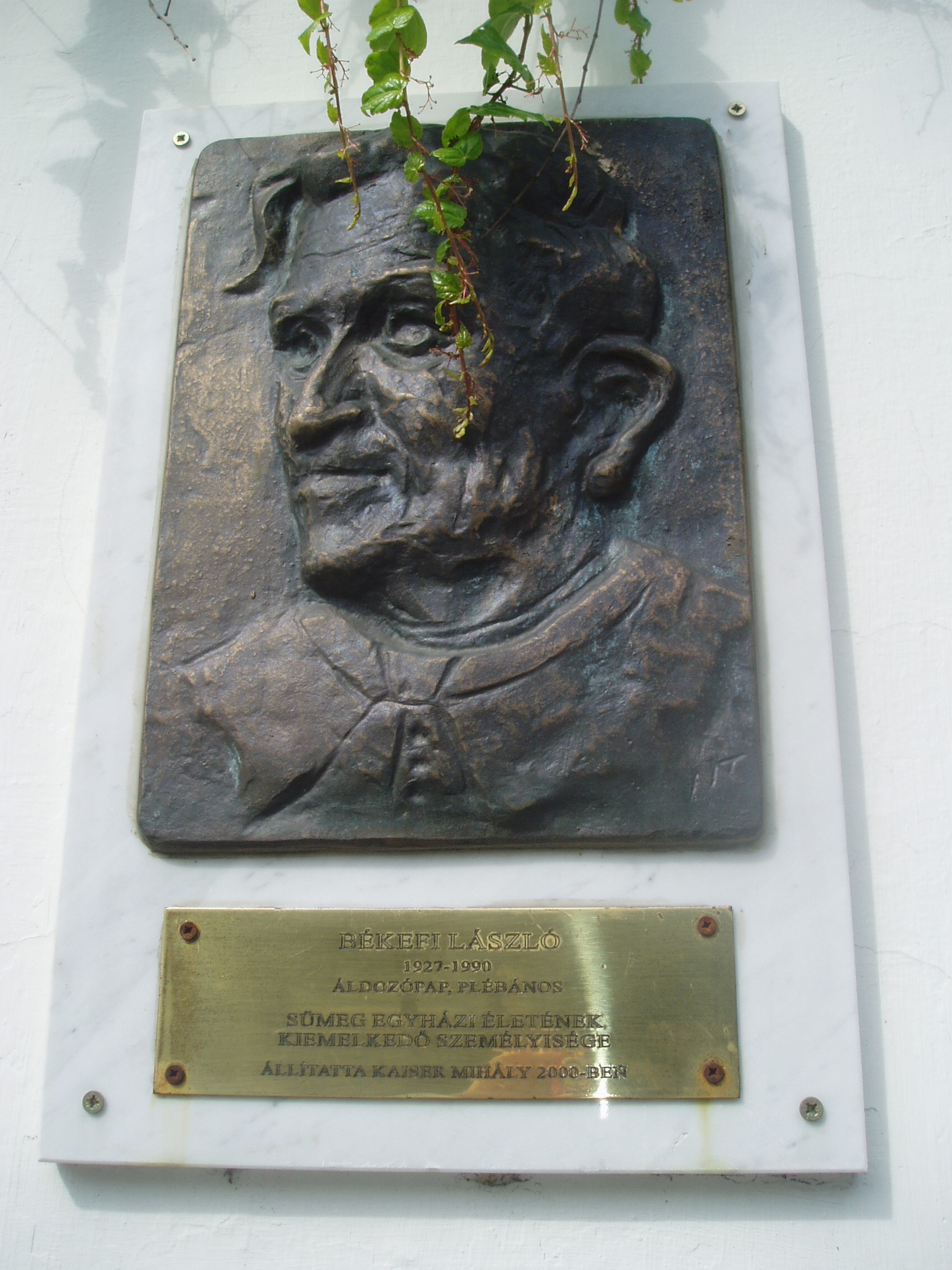 Nyilvános 876 | 1750 | Sümeg, Panteonfal. Békefi László emléktáblája | A Kisfaludy téren, Kisfaludy Sándor szülőháza előtt alakították ki Sümeg Panteonfalát. A képen Békefi László emléktáblája látható. Békefi László (Celldömölk, 1927. júl. 30. – Sümeg, 1990. márc. 13.) prépost. 1952-ben, Veszprémben szentelték pappá. Két évig Buzsákon, egy esztendeig Búcsúszentlászlón, 1955–1957 között Sümegen káplán. Veszprémben püspöki helytartó, püspöki titkár, majd templomigazgató. 1961-től Sümegen plébános, 1963 után a kerület vezető esperese, 1973-tól prépost. A város mindkét templomát felújíttatta, a plébániatemplom központi fűtést kapott. A Máltai Lovagrend segítségével munkálkodott a várbeli kápolna felújításán. Tagja volt a városi Hazafias Népfrontbizottságnak, a Városvédő- és Szépítő Egyesületnek. 1994-ben – posztumusz – Sümeg város díszpolgára címet kapta. A fénykép 2007 júniusában készült. Felh. irod.: Koppány Tibor - Kozák Károly: Sümeg útikalauz. Veszprém, Idegenforgalmi Hivatal, 1965 Látnivalók Veszprém megyében. Miskolc, Well-PRess, 2004 Veszprém megyei életrajzi lexikon. Veszprém, Veszprém Megyei Önkormányzat Közgyűlése, 1998 |