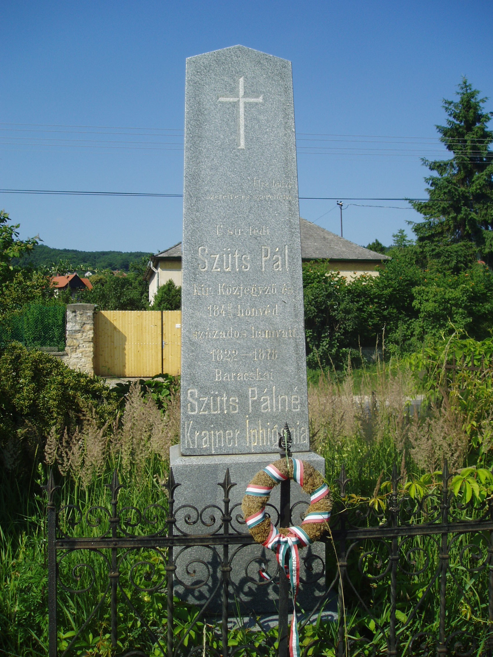 Nyilvános 837 | 1658 | Sümeg, Temető. Szűts Pál sírja | Sümeg délkeleti határában, a Tapolcára vezető út mellett emelkedő lankás domboldalon találjuk a város köztemetőjét. Helyét még Bíró Márton püspök jelölte ki; jelentősebb számban a XIX. század eleje óta kezdtek ide temetkezni. A temetődomb tetején áll az 1816-ban épített, későbarokk stílusú temetőkápolna. Körülötte a sümegi élet utolsó két évszázada szinte valamennyi híres személyiségének sírja fellelhető. Itt nyugszik Szűts Pál (1822-1878) ügyvéd, az 1848/49-es szabadságharc századosa. Alakulatával Perczel tábornok drávai hadtestében, illetve a Központi Mozgó Seregnél harcolta végig a szabadságharcot. A fénykép 2007 júniusában készült. Felh. irod.: Koppány Tibor - Kozák Károly: Sümeg útikalauz. Veszprém, Idegenforgalmi Hivatal, 1965 Sümegi kalauz. Sümeg, Sümegi Fórum Alapítvány, 1993 Miklósi-Sikes Csaba: Kőbe vésett történelem. A sümegi városi temetők története és sírjelei 1950-ig. Sümeg, Sümegi Fórum Alapítvány, 2002 Veszprém megyei életrajzi lexikon. Veszprém, Veszprém Megyei Önkormányzat Közgyűlése, 1998 |