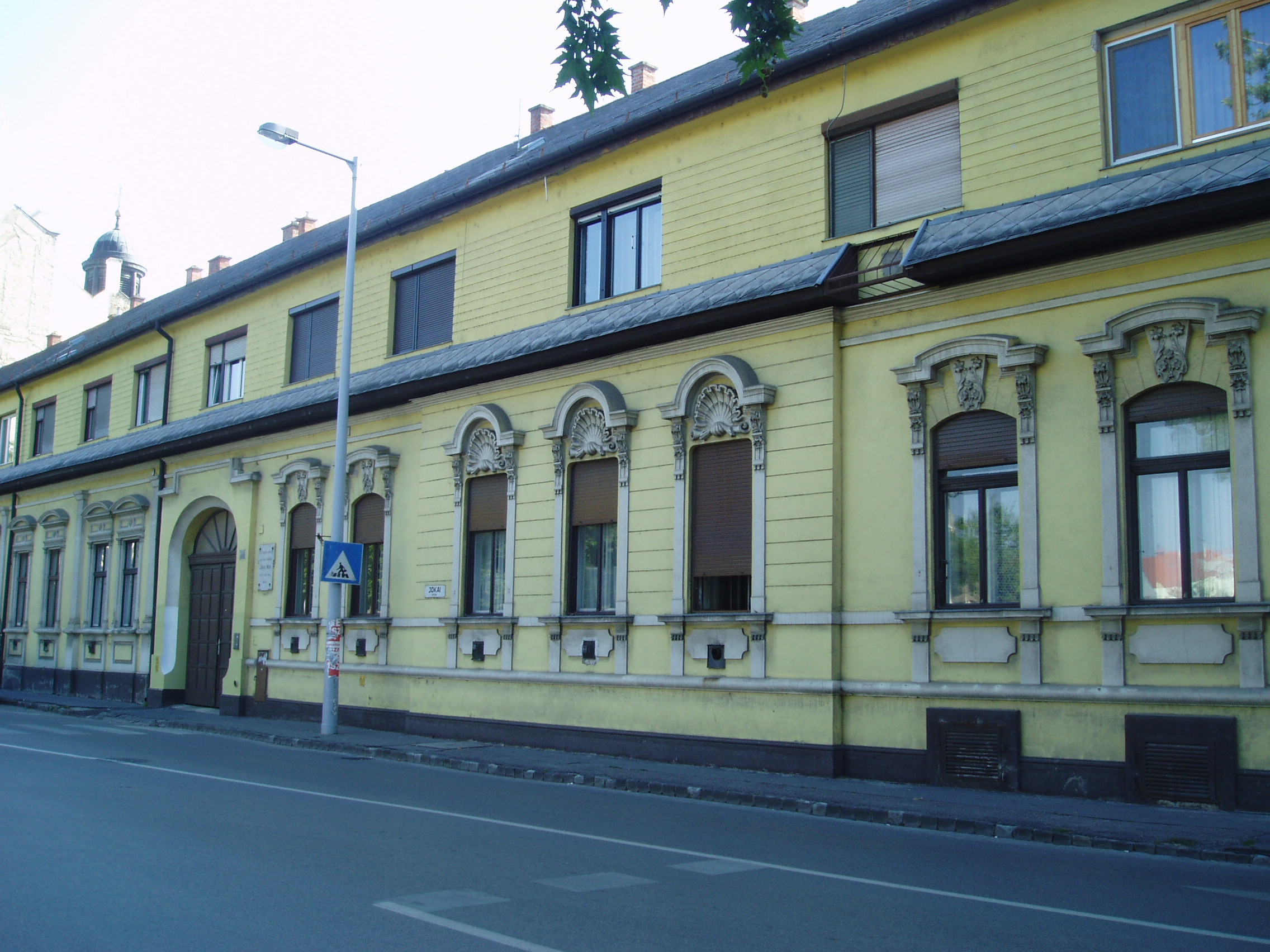 Nyilvános 1181 | 2249 | Kecskemét, Jókai utca 6-8. | Diák korában az akkor ezen a helyen állott épületben, Gyenes Mihályék házában lakott Jókai Mór 1842-44 között. Házigazdája nagy tudású városi mérnök volt, aki az akkor még festőművésznek készülő fiút gyakran magával vitte környékbeli útjaira. Az ekkoriban megismert meg népszokásokat, mint például a pünkösdi király választást vagy a pusztai párbajt később regényeiben is megörökítette. Házigazdájának is köszönhetően írta később: "Itt lett belőlem ember és különösen itt lett belőlem magyar író." Emléktábláját még életében, írói működésének 50. évfordulóján avatták fel. A fénykép 2006 augusztusában készült. Felh. irod.: Heltai Nándor: Kecskemét. Kecskeméti Lapok, 1998 |