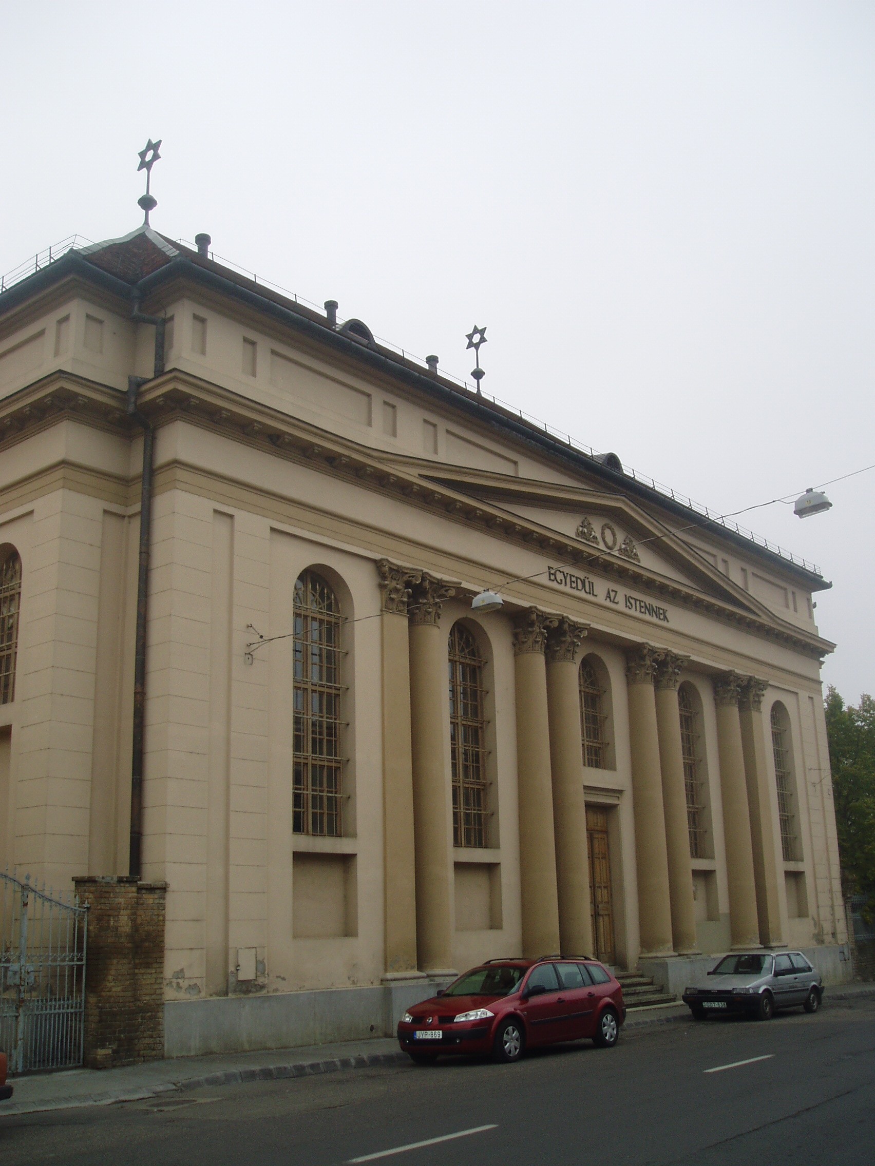 Nyilvános 1028 | 1582 | Baja, Munkácsy utca 19. Zsinagóga - Ady Endre Városi Könyvtár | A nemes arányú, későklasszicista zsinagóga az 1840-es években épült Frey Lajos tervei alapján annak a korábbi imaháznak a helyére, amely a várost sújtó nagy 1840-es tűzvészben leégett. Ekkor már virágzó, mintegy kétezres lélekszámú közösség élt a városban és környékén. Adományaikból 1845-re el is készült az új épület. Átadásakor első alkalommal avattak Magyarországon magyar nyelvű beszéddel zsinagógát. Az épület tájolása nem a vallási előírásokhoz, hanem az utca építési vonalához igazodik. Hosszabbik oldalával van az utcafronton, középütt a kijárati ajtóval. Fölötte lapos timpanonban a felirat magyarul: "Egyedül az Istennek". Kert felőli oszlopos bejárata felett is timpanon látható, rajta héber betűs felirat: "Nem más ez, mint Isten háza és ez az ég kapuja". Az épületbe belépő egy vörös márvány kézmosó mellett és egy kisebb karzat alatt érkezik a főhajóba. A zsinagóga belső tereit kettős pillérek három hajóra osztják, tetején igényes ornamentikájú csehsüveges boltozatrendszer nyugszik. A főhajó végén látható a frigyszekrény, melyet klasszicista építmény foglal magába. Benne kézzel írott tóra tekercsek és eredeti vallási kegytárgyak találhatók. Az épületet az 1980-as években újították fel, eredeti állapotát messzemenően szem előtt tartva. A feladat megoldását nem kevés elismerés illette: az építészek és közreműködők több kitüntetést is elnyertek, a tervező, Tornai Endre Ybl-díjat kapott. Az épület 1985 ősze óta az Ady Endre Városi Könyvtár otthona. Bár a helyi jelentős könyvgyűjtemények jó része 1945 körül ebek harmincadjára került, a Városi Könyvtár így is rendelkezik számos könyvészeti ritkasággal. Állományába került a bajai ferencesek kolostori könyvtárának egy töredéke, kiegészítve a Zichy, iktári Bethlen és hadik-Barkóczy grófok könyvtárainak hagyatékával. Így régi könyvek tekintetében a legjelentősebb magyar kistelepülési könyvtári gyűjteményt képezi. Különlegességei között 3 ősnyomtatvány, 246 darab antikva és számos unicalis példány található. A fénykép 2007 októberében készült. Felh. irod.: www.baja-aevk.hu |