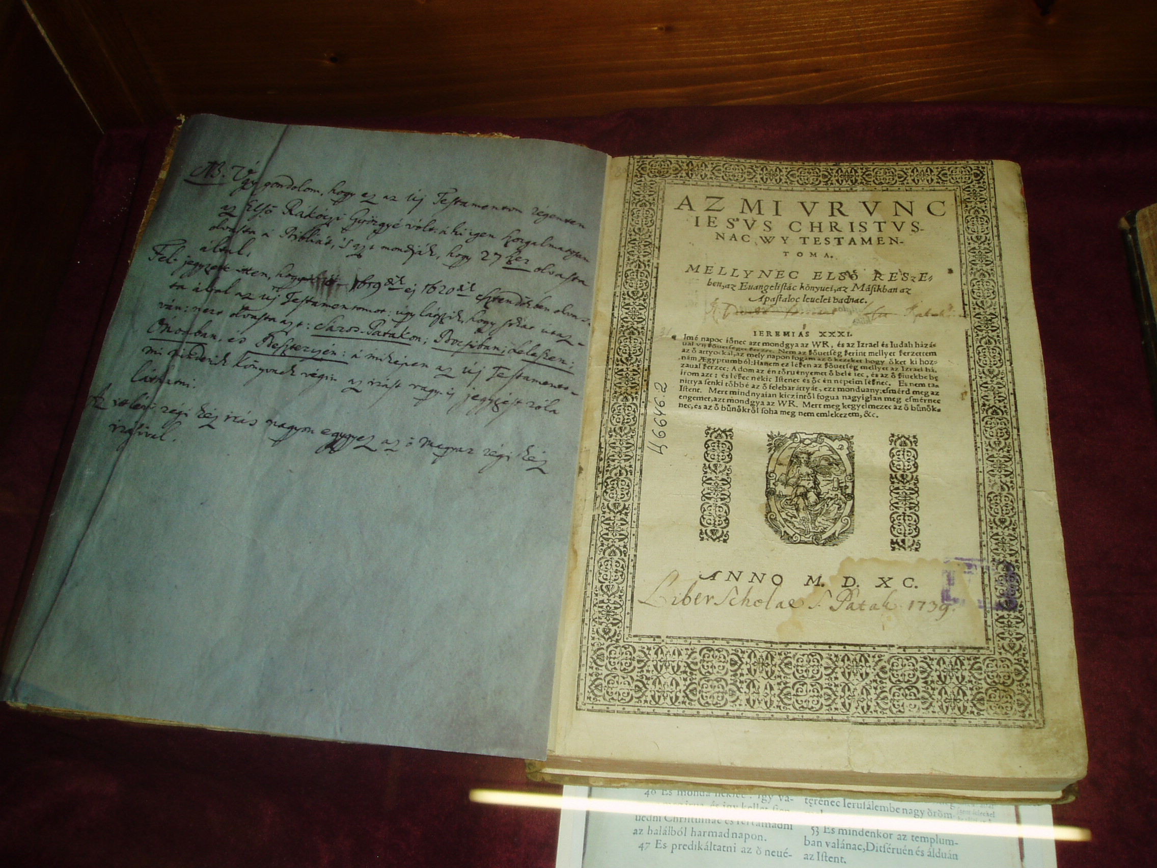 Nyilvános 986 | 1488 | Sárospatak, Rákóczi utca 1. Református Kollégium könyvtára | Az 1531-ben alapított Sárospataki Református Kollégium könyvtára évszázadok óta az ország egyik legértékesebb könyvgyűjteménye. Az iskola létrehozásától kezdve a tudós professzorok és a hallgatók közös igénye, illetve a város birtokosai és a külföldet járt diákok adományai alakították. A könyvtár egyik nagy kincse az 1590-ből származó Vizsolyi Biblia egyik példánya. Károli Gáspár, a gönci tudós református lelkész, miután feleségét és gyermekeit egy pestisjárványban elveszítette, 1586-ban kezdett neki a Biblia teljes fordításának. Kinyomtatásához Mantskovit Bálint e célból Vizsolyba telepített nyomdája Németalföldről új betűket kapott, a papírt Lengyelországból hozták. A nyomtatást 1589. február 18-án kezdték, és másfél év múlva, 1590. július 20-án fejezték be. A szedőknek négy és fél millió betűt kellett a papíron elhelyezniük. A nyomtatás már a fordítás alatt megkezdődött, a frissen elkészült részeket szinte laponként vitte a futár Göncről Vizsolyba. Az eredeti kiadásból 52 példány maradt fenn, közülük 24 külföldön van. Három példány az Országos Széchényi Könyvtárban található, egyet Sárospatakon, egyet a vizsolyi templomban őriznek. A vizsolyi Biblia nemcsak a magyar reformáció megerősödését és a könyvnyomtatás meghonosodását, hanem a magyar irodalmi nyelv tökéletesedését is jelentette. Károli fordítását kisebb változtatásokkal közel háromszáz kiadásban nyomtatták újra. A magyar irodalmi nyelv alakulására gyakorolt hatása szinte felmérhetetlen. A fénykép 2007 augusztusában készült. Felh. irod.: www.gradatio.hu/nagykonyvtar 415 éves a vizsolyi Biblia. = Evangélikus Élet 2005. 31. |