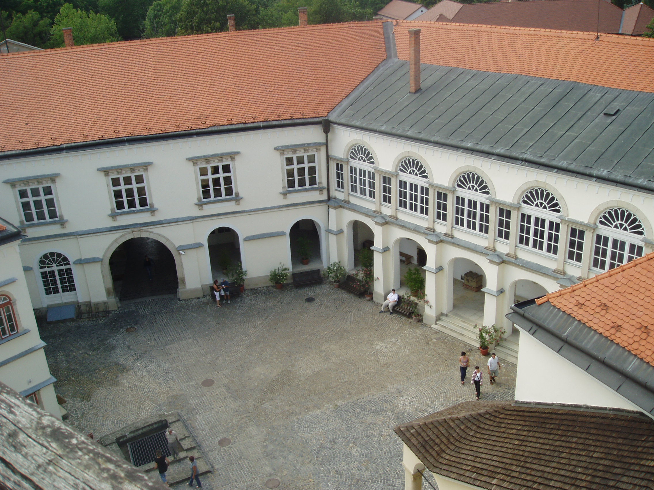 Nyilvános 1006 | 1473 | Sárospatak, Szent Erzsébet utca 19. Rákóczi-vár | A Vörös-torony legfelső szintjéről gyönyörű kilátás nyílik a külső várra, a városra, és az azt körülvevő változatos tájra. De szép lelátás kínálkozik a várkastély tarka tetőire, a várudvarra, az azt övező homlokzatokra és az árkádos loggiára is. A fénykép 2007 augusztusában készült. Felh. irod.: Détsy Mihály: Sárospatak. Bp. Corvina, 1974 Látnivalók Borsod-Abaúj-Zemplén megyében. Miskolc, Well-PRess, 1995 www.sarospatak.hu/nevezetessegek |