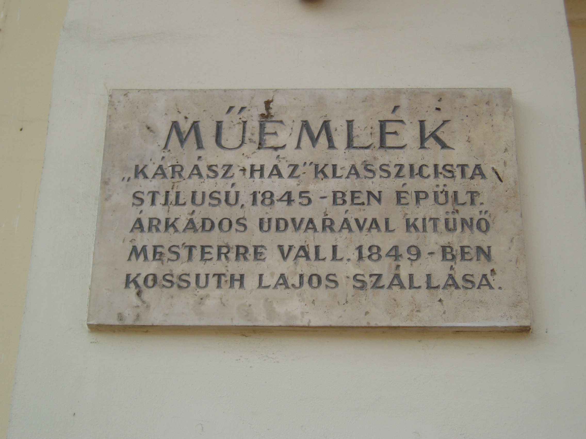 Nyilvános 1012 | 1399 | Szeged, Klauzál tér 5. Kárász-ház | A tér legszebb és legjelentősebb műemlék épülete a Kárász-ház (1845). A szegedi klasszicizmus legérettebb, egyszerű, de monumentális alkotása. Kiemelkedő szerepe van a tér kiegyensúlyozott hatásában. 1849-ben ebben a házban szállt meg Kossuth Lajos és ennek kovácsoltvas erkélyéről mondotta el július 12-én utolsó nyilvános hazai beszédét, majd 14-én itt írta alá a román - magyar megbékélési tervezetet is Nicolae Bălcescuval. A történelmi nevezetességű erkély 1918-ban is szerephez jutott. Innen jelentette be október 31-én a szegedi Nemzeti Tanács a város népének az őszirózsás forradalom győzelmét. Szólt ekkor a szegediekhez Móra Ferenc és Juhász Gyula is. Majd az események fordultával 1919. június 2-án Károlyi Gyula kormánya is itt hirdette ki megalakulását. A Kárász családból többen is beírták nevüket a város történetébe. Az alapító, Kárász Miklós (1715-1797) szegény felvidéki nemes ifjú volt, városi íródeáknak került Szegedre. 1739-ben lett Szeged főjegyzője, s egyúttal - szabályellenesen - tanácsnoka is, majd 11760-ban Csongrád megye alispánja. Vagyonát házasságával alapozta meg. A mostani ház helyén az 1760-as években építette fel kúriáját. Eléje Szentháromság-szobrot emelt, állítólag fogadalomból, mert egy kocája elvesztése miatt ártatlan kondását agyonütötte. Móricz Pál "A Kárász uraság kocája" című elbeszélésében dolgozta fel a helyi szájhagyományt. Fia, Kárász István (1745-1815) Csongrád megye alispánja, az 1790-91. évi országgyűlésen a nemesi ellenzék egyik elszánt vezére volt. Az ő fia, szintén Kárász István 1840-ben mint Csongrád megye követe az országgyűlésben Deák Ferenccel emelte fel szavát az ősiség ellen. Kárász Miklós egy másik unokája, Kárász Benő (1792-1874) építette a most itt álló Kárász-házat. Ő a megyének a reformkorban alispánja, 1848-ban főispánja, tagja a szegedi hadi választmánynak, amiért Világos után a pesti Újépület foglya volt. Kegyelem révén szabadult ugyan, de az önkényuralom alatt állandó rendőri felügyelet alatt állott. Az alkotmány visszaállításáért folytatott küzdelemben, Szeged gazdasági fejlődésében jelentős szerepet játszott, majd 1861-től 1868-ig ismét főispán lett. Lánya, Anna fiatalon meghalt, egyetlen fia, Kárász Géza (1837-1905) kezén pedig a vagyon elúszott. Amikor 1857-es szegedi látogatásakor ebben a házban szállt meg Ferenc József, az anekdota szerint a húszéves, tüzes kuruc Kárász Géza éppen akkor érkezett haza külföldről, s a kapu alatt a császári őrséget meglátva iszonyú lármát csapott, mire apja a hajdúkkal bezáratta a kocsiszínbe... A fénykép 2007 júliusában készült. Felh. irod.: Péter László: Szeged. Bp. Panoráma, 1981 |