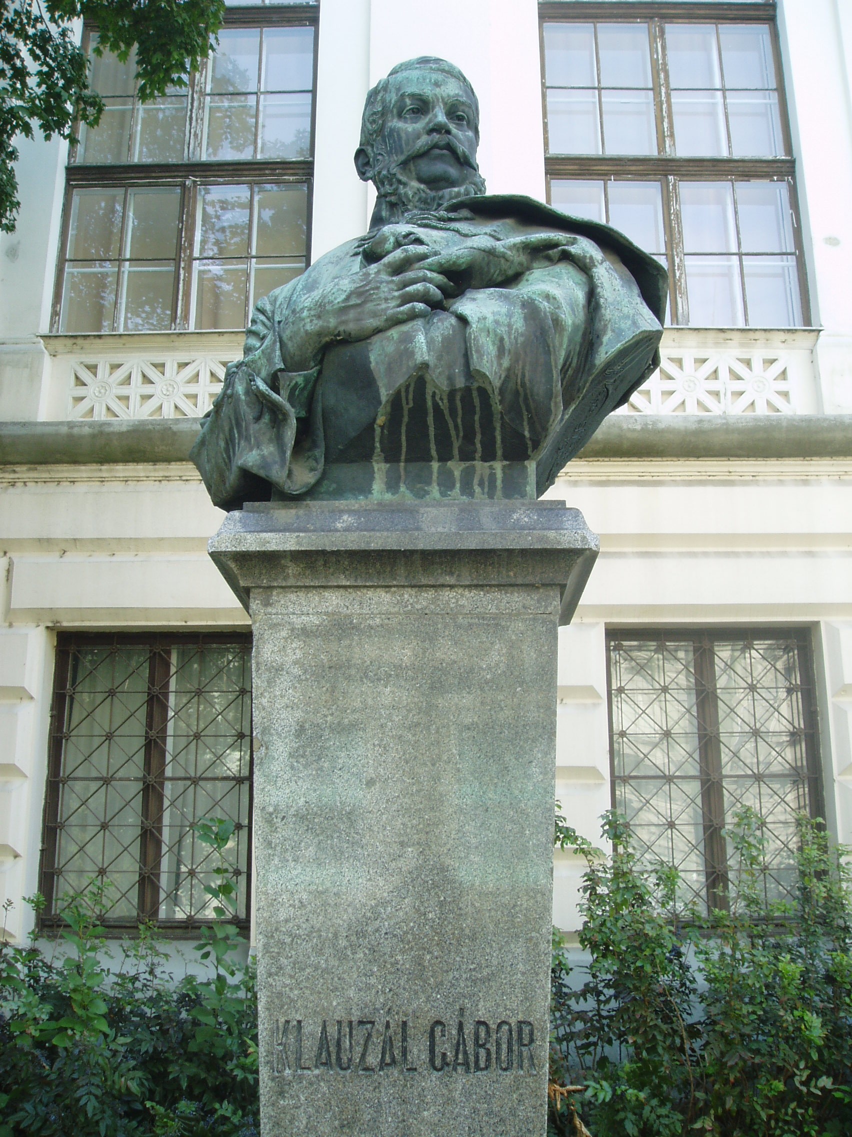 Nyilvános 1054 | 2333 | Szeged, Roosevelt tér: Klauzál Gábor mellszobra | A Közművelődési palota előtt 1906-ban helyezték el Klauzál Gábor mellszobrát, ifj. Vastagh György alkotását. Klauzál Gábor Pesten végzett jogot, s a hagyomány szerint amikor Imre bátyja hívására állást keresni jött Szegedre, kendőbe kötve, botja végén hozta minden vagyonát. Egy bálon hódította meg a szép Prezetska Máriát, egy jómódú gyógyszerész lányát. Bátyja és apósa vitte keresztül, hogy a jó képességű fiatal ügyvédet Csongrád megye 1828-ban első aljegyzőnek és fizetéses táblabírónak nevezte ki. Szeged 1832-ben követévé választotta. 1847-ben meghalt a felesége, így apósa házát ő örökölte. A szabadságharc bukása után kistétényi birtokán gazdálkodott. Az 1861. és 1865. évi országgyűlésen Szeged képviselője volt a Deák-párt programjával. Szegeden hunyt el, sírja a Belvárosi temetőben van (lásd: Szeged, Fonógyári út). Egykori lakóházának helyét emléktáblával jelölték meg (lásd: Szeged, Klauzál tér 8.). A fénykép 2007 júliusában készült. |