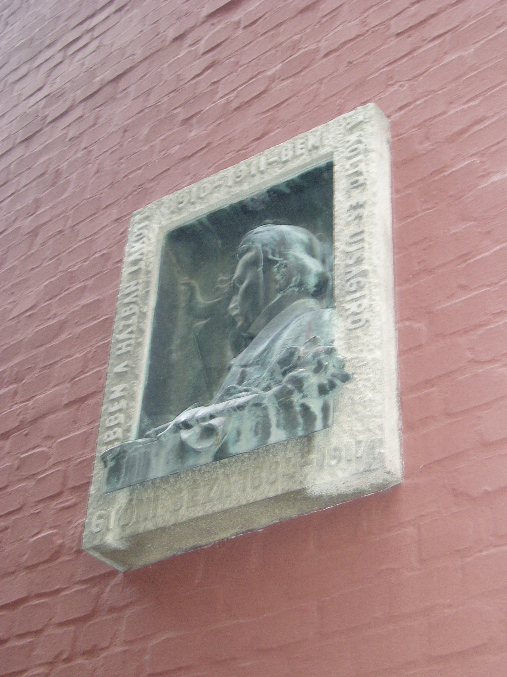 Nyilvános 794 | 1250 | Sopron, Orsolya tér 1. | Az egykor itt állt házban lakott albérletben 1910/11-ben Gyóni Géza. Domborműves emléktábláját a Frankenburg Irodalmi Kör - melynek a költő is a tagja volt - felkérésére készítette el 1918-ban Lukácsy Lajos, miután a költő-újságíró hadifogolytáborban fiatalon vesztette életét, nem sokkal szeretett öccse Áchim Mihály halála után. Az eredeti házat a második világháborúban lebombázták, az emléktáblát áthelyezték utódépületének homlokzatára. A kép 2008 júniusában készült. Felh. irod.: Czellár Katalin: Sopron. 3. jav. kiad. Bp. Panoráma, 2000 http://www.szoborlap.hu |