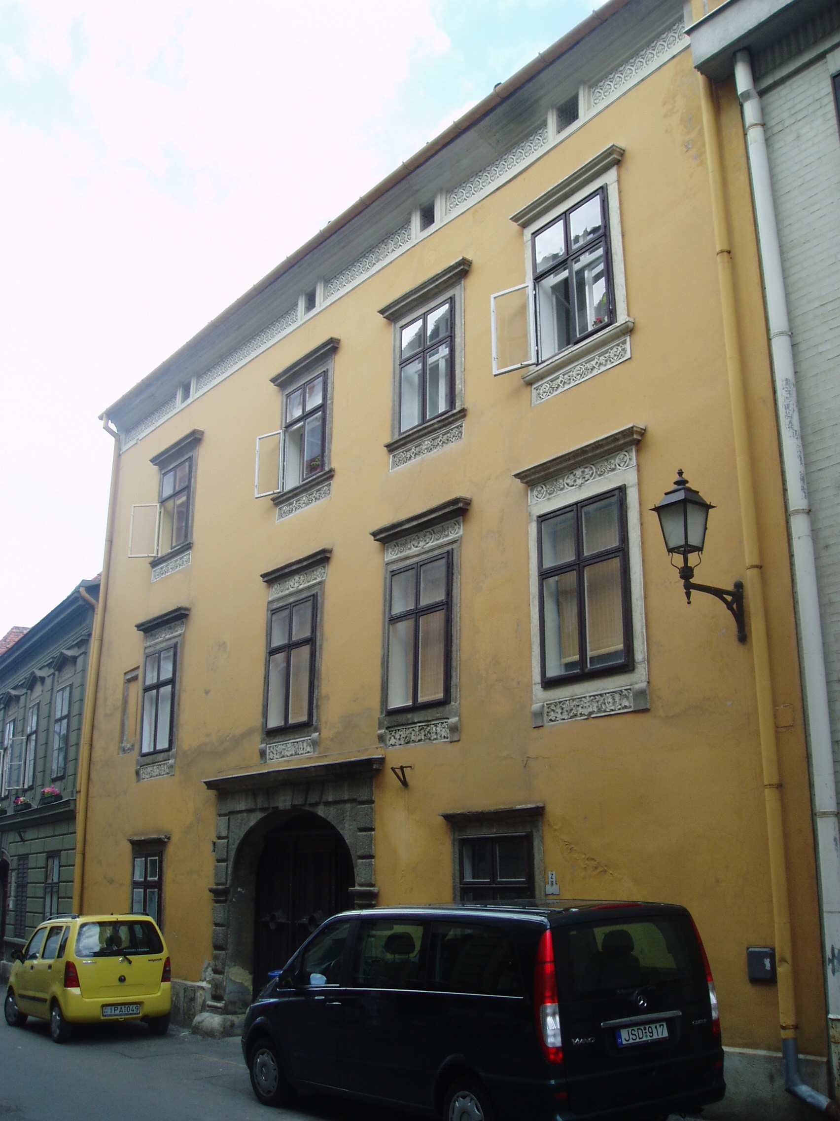 Nyilvános 977 | 1261 | Sopron, Szent György utca 8. | A középkori eredetű, kétemeletes barokk lakóház a XVIII. században épült. Itt lakott Hell János orvos, aki 1800 körül először oltott Magyarországon himlő ellen. A kép 2008 júniusában készült. Felh. irod.: Czellár Katalin: Sopron. 3. jav. kiad. Bp. Panoráma, 2000 |