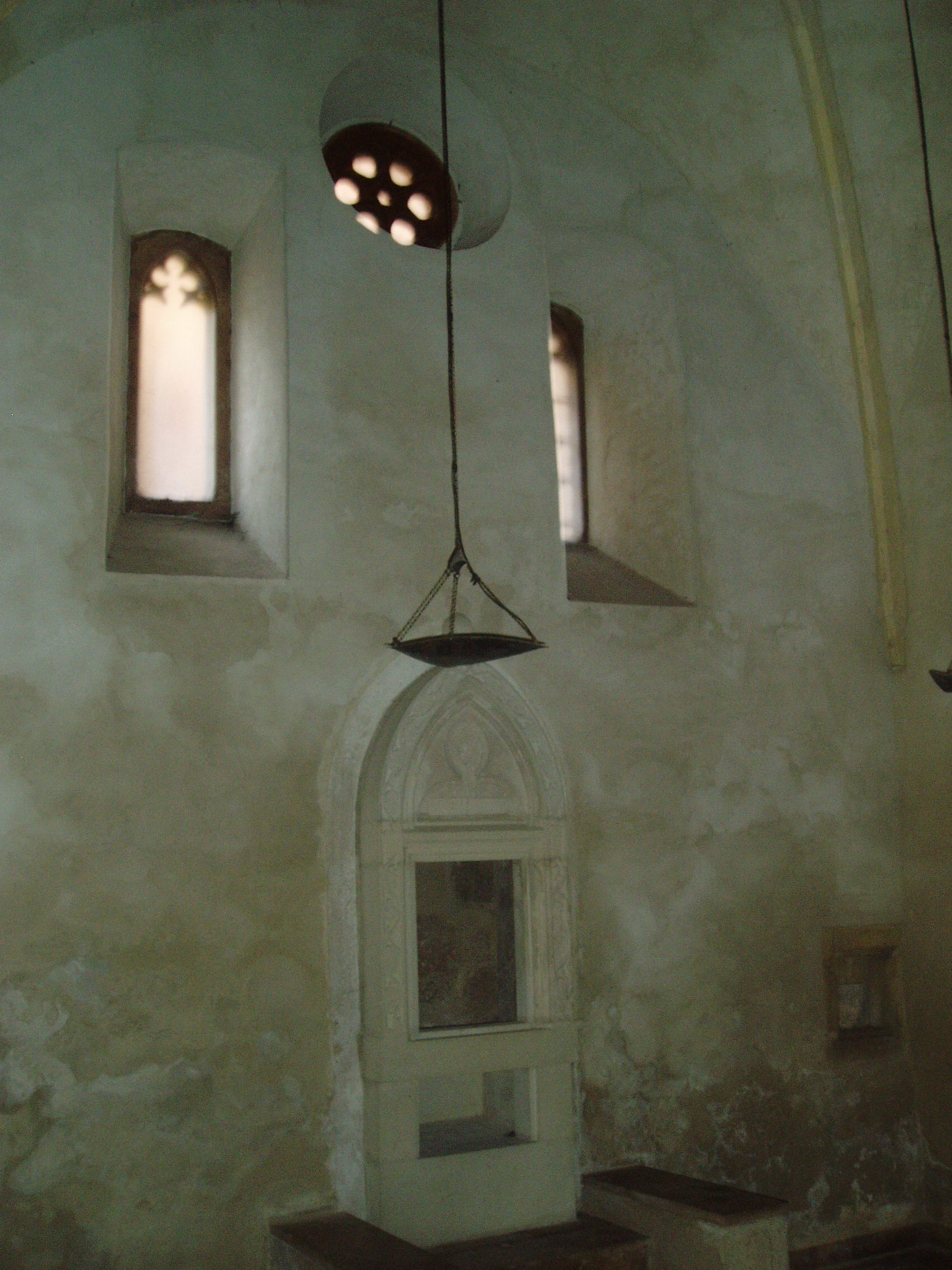 Nyilvános 959 | 1294 | Sopron, Új utca 11. | A középkori eredetű lakóház középkori zsinagógát rejt. Az első zsidók a XIII. században települtek be Sopronba. 1370 körül épült ez az imaházuk, egy Izrael nevű bankár magánzsinagógájaként. A többször átalakított épület egyszerű barokk homlokzatának bal oldalán nyílik a kosáríves kapuzat, amelyen át beléphetünk a középkori templomba: elsőként egy utcára nyíló, boltozatos terembe, majd innét magába a zsinagógába. A két emelet magas termet kétszakaszos keresztboltozat fedi s gótikus kőrácsú ablakokon át kap fényt. A keleti falba mélyül az Áron-fülke, azaz a frigyszekrény. A jobbra lévő kis, kőkeretes fülkében valószínűleg kegyszereket tartottak. A kép 2008 júniusában készült. Felh. irod.: Czellár Katalin: Sopron. 3. jav. kiad. Bp. Panoráma, 2000 |