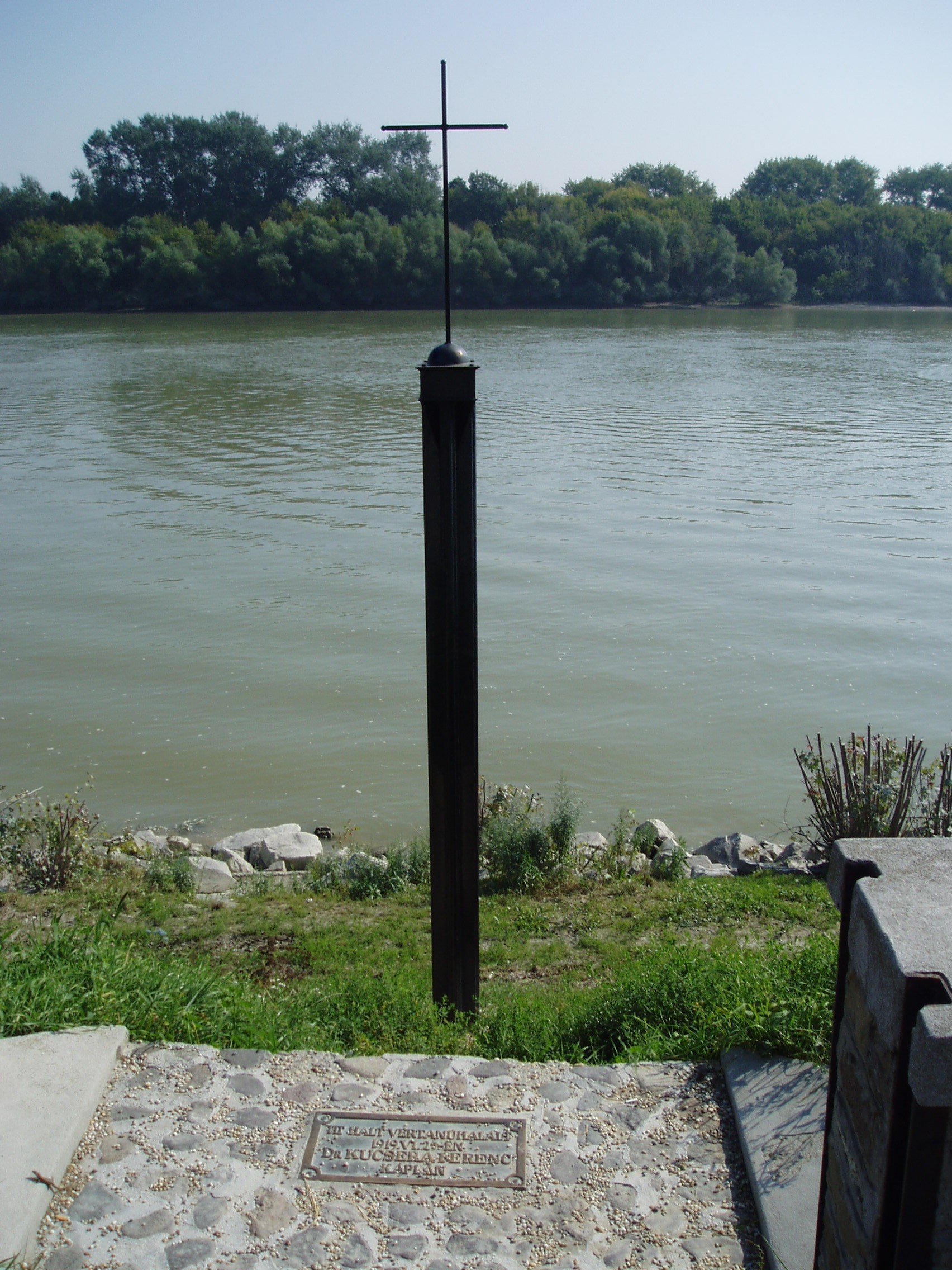 Nyilvános 1680 | 8242 | Szentendre, Dunakorzó: Kucsera Ferenc emlékkereszt | 1919 nyarán ezen a helyen végezték ki Kucsera Ferencet. Dr. Kucsera Ferenc /Léva, 1892 - Szentendre,1919/: A szegény sorsú fiatalembert 1915-ben szentelték pappá és még ebben az évben Szentendrére került mint segédlelkész. A Tanácsköztársaság idején a városban június 24-én a kommunisták elleni szervezett akcióra került sor, amelyhez harangzúgás adta meg a jelet. Ehhez a forradalmárok vádja szerint Kucsera Ferenc adta ki a templom kulcsát, ami pedig nem volt igaz. Mégis halálra ítélték és itt, a Duna parton ki is végezték. A temetőárokban elföldelt holtestét tíz évvel később temették el méltón a Katolikus Kálvária kertjébe. Halálának helyét hamarosan fakereszttel jelölték meg a helybeliek, amelyet az 1950-es években eltüntettek. A ma itt álló kis öntöttvas emlékkeresztet 1993-ban állították. A fénykép 2005 szeptemberében készült. Felh. irod.: Pethő Zsoltné Németh Erika: Szentendre utcanevei: várostörténeti olvasmány . Szentendre, 1996 |