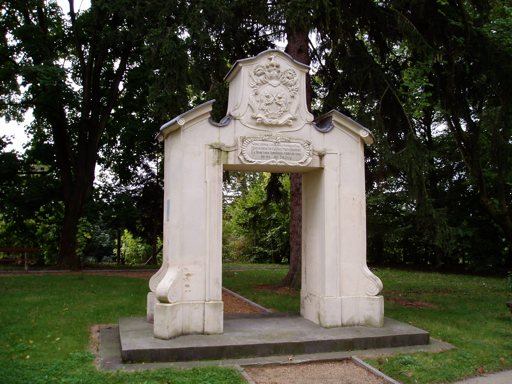 Nyilvános 1491 | 3674 | Csurgó, Széchenyi tér 9. Festetics-kapu | A Csokonai Vitéz Mihály Református Gimnázium és Általános Iskola mai épülete az egykori vadasparkban áll. A nagy kiterjedésű, 4 hektárnyi parkban nyolcvan féle, ritkaságszámba menő növényfaj él. A látogatót együttesen ragadja meg a patinás iskola látványa, a hatalmas ősfák közötti sétányok hangulata és a neves egyéniségek tiszteletére állított emlékek együttese. Ezen emlékek egyike az ún. Festetics kapu, amelyet 1939-ben emeltek az iskolaalapító Festetics György emlékének. Az emlékkapuba beépítették a Festetics-majorban állott egykori kastély főbejárata feletti családi címert és az alatta levő latin feliratot. Felállítása óta ez a kapu a csurgói diákélet szimbóluma, mint a diákok fogadásának és búcsújának helyszíne. A fénykép 2004 októberében készült. Felh. irod.: Horváth József: Csurgó. Műemlékek. Bp. Tájak, Korok, Múzeumok Kiskönyvtára 441. 1982 Csurgói kalauz. Szerk. Terényi Zoltán. 1974 Látnivalók Somogy megyében. Miskolc, Well-PRess Kiadó, 2000 www.vendegvaro.hu |