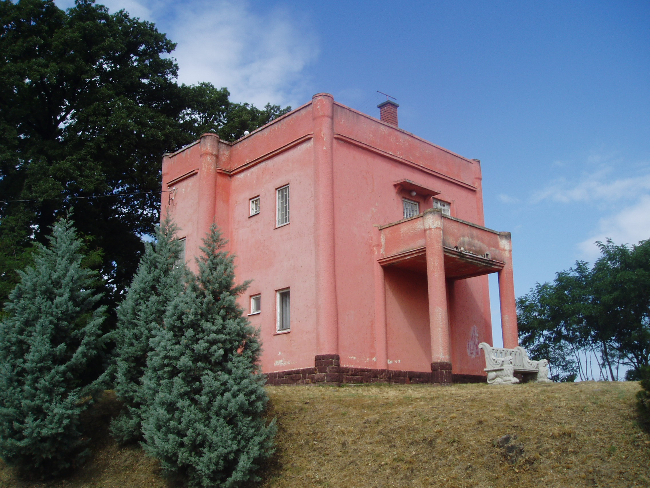 Nyilvános 1117 | 2055 | Fonyód, József utca 6. Kripta-villa | A fonyódi Várhegyre vezető út egyik legszebb pontján álló villát 1939-ben építtette Abrudbányai-Rédiger Ödön. Elveszített szerelmének állított emléket az alagsorban lévő márvány nászi szobával, amelynek életnagyságú szobraitól örök szerelmet remélhetnek a mai fiatalok. Az 1910-es évek közepén történt, hogy Abrudbányai menyasszonya, Magdus, egy kolozsvári patikus leánya három héttel az esküvőjük előtt váratlanul elhunyt. A később tehetős emberré vált egykori vőlegény jó két évtizeddel később építtette a villát. Terve az volt, hogy az időközben visszacsatolt Kolozsvárról ide hozatja menyasszonya hamvait. Elgondolása azonban a történelmi helyzet megváltozása miatt nem valósult meg. A szerelmes férfi a fantasztikummal határos módon állított oltárt halott menyasszonyának: a villában kőből kifaragtatta "nász-szobájukat" széles, kétszemélyes nászággyal, kő éjjeliszekrényekkel, az ágyba egymás mellé fektette a saját és a szeretett lány életnagyságú, márványból faragott alakját, műmárvány lepellel letakarva. A máig élő legenda szerint, ha a nászágy felett egy leány és egy fiú megfogja egymás kezét, akkor szerelmük örökké tart. A Kripta-villa nyáron csak az esti órákban látogatható. A fénykép 2007 júliusában készült. Felh. irod.: http://muzeum.fonyod.hu/kripta.htm |