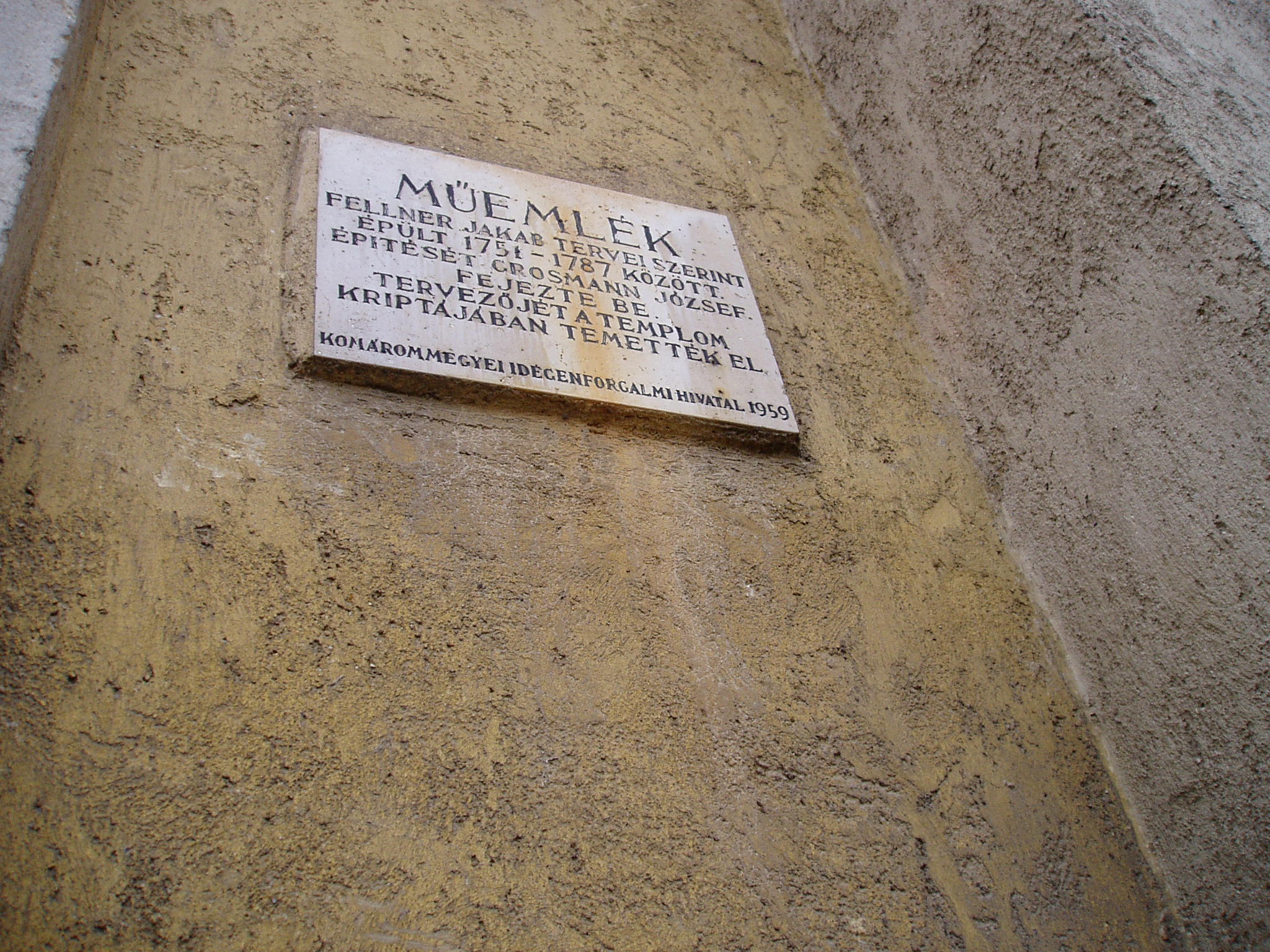 Nyilvános 1454 | 3138 | Tata, Kossuth tér: Római katolikus templom | A kéttornyú, copfstílusú templom Franz Anton Pilgram és Fellner Jakab tervei szerint épült 1751-1787 között. Az egyhajós templom külső és belső díszítésében a levelekből font füzérdísz uralkodik. A főhajónál szűkebb terű szentély főoltár oszlopos építményében a Kálvária faragott korpusza látható - Schweiger Antal műve. Értékes munka a márvány szentélyrács, a gazdag faragványú szószék, valamint a Péter és Pál apostol búcsúját ábrázoló Hubert Mauer-festmény. A gyóntatószékek és padok copfstílusúak. A sekrestye értékes rokokó berendezése a majki kamalduli remeteségből került ide. A templom kriptájában temették el Károly Ambrus hercegprímást, Eszterházy Ferenc grófot és a tervező Fellner Jakabot. A fénykép 2005. júliusában készült. Felh. irod.: Látnivalók Komárom-Esztergom megyében. Miskolc, Well-PRess, 2003 |