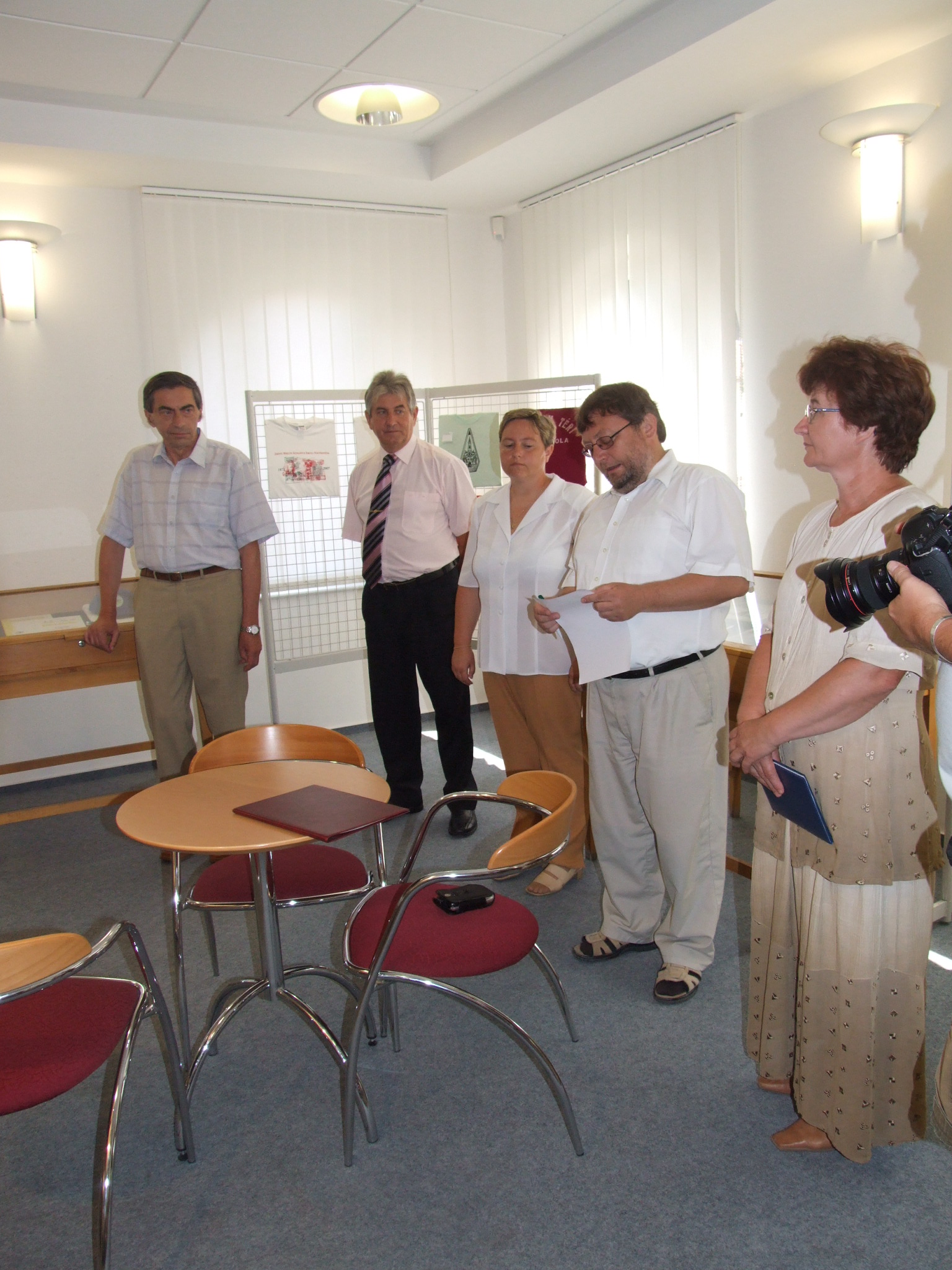 Nyilvános 1244 | 2720 | Balról jobbra: | Tarnóczky Attila, a kiállítás szervezője, Horváth István versmondó, Száraz Csilla, a Thúry György Múzeum igazgatója, Czupi Gyula, a Halis István Városi Könyvtár igazgatója, Szmodics Józsefné, Nagykanizsa M.J.V. Önkormányzatának Művelődési és Sportosztály vezetője |
