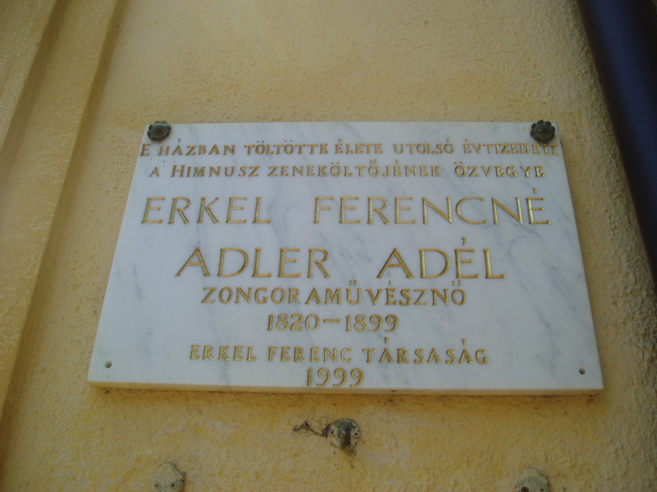 Nyilvános 1022 | 1530 | Gyula, Kossuth utca 30. | Az Almásy-kastélyhoz vezető kőhíddal egyvonalban, az utca túlsó oldalán álló földszintes lakóház egykor Erkel Rezső (Rudolf) vármegyei főorvos, Erkel Ferenc öccse lakása volt, ahol a zeneköltő is gyakran megfordult (János testvérük a szomszédban, a mai 28. szám alatt lakott). Jókai Mór két ízben is megfordult a házban. Először Laborfalvy Rózával 1848. augusztus 29-én kötött házasságuk után voltak a ház vendégei (Erkel Rezső korábban a Nemzeti Színház orvosa volt, onnét ismerték egymást). 1849 júliusában, a szabadságharc vége felé Jókai, Pestről elmenekülve az Erkel család vendégszeretetére bízta feleségét, akivel együtt volt a kor kiváló operaénekesnője, Schodelné Klein Róza is, akik a ház két udvari szobájában húzták meg magukat. Ide tért vissza Jókai feleségéért a világosi fegyverletétel után. Erről szól "Egy napom Gyulán" című szívszorító írása: "Ez volt életem legszomorúbb napja. 1849. augusztus 13-án nyitottam be a gyulai Erkel ház ajtaján ezzel a szóval: nincsen hazánk”. Jókai innét utazott álöltözetben, hamis papírokkal Tardonára. 1860-tól haláláig ebben a házban élt Erkel Ferencné Ádler Adél, miután különvált férjétől. Gyulán hunyt el, sírja a Szentháromság-temetőben van. Az épületen Erkel Rudolf, Ádler Adél és Jókai Mór emlékét márványtáblákon örökítették meg. A fénykép 2007 júliusában készült. Felh. irod.: Czeglédi Imre: Gyula útikalauz. 2. jav., bőv. kiad. Gyula, 1995 |