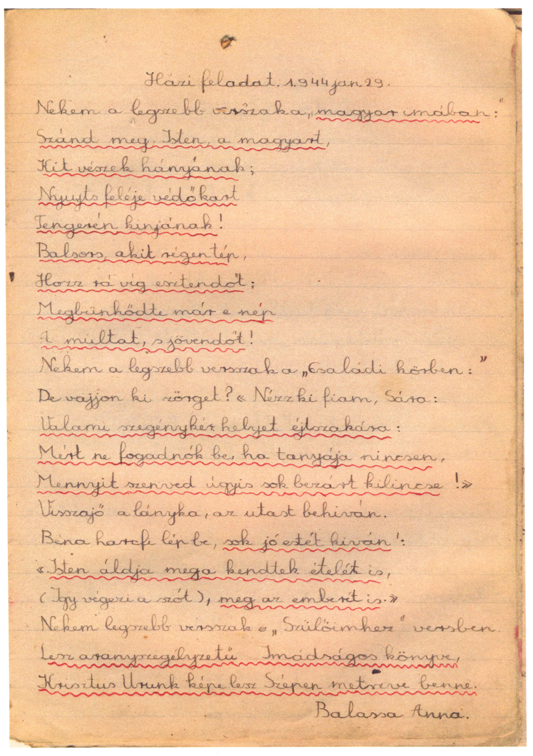 Balassa Anus írásfüzetéből (részlet)