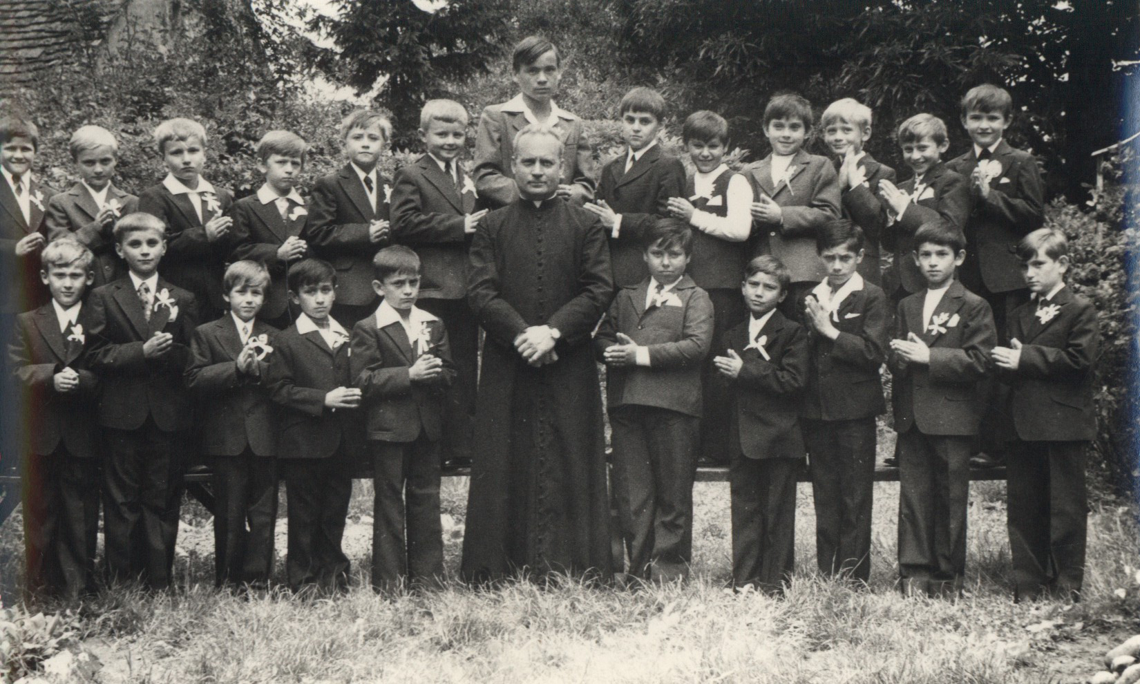 Nyilvános 1634 | 4111 | Rövid leírás | Teljes leírás (485 B) | A régi iskola 1976-ban. A középen látható pap családi neve: Tihanyi. Személyek: Hátsó sor balról jobbra: 1. ismeretlen 2. Pfeifer István 3-5. ismeretlen 6. Zsovár László 7. Dudli József 8. ismeretlen 9. Horváth László 10. Marton László 11. Csöndör László 12-13. ismeretlen Első sor balról jobbra: 1. Gulyás Ervin 2-3. ismeretlen 4. Baranyai László 5. Tömöri Ferenc 6. pap 7. Bognár József 8. ismeretlen 9. Tolnai Jenő 10-11. ismeretlen. |