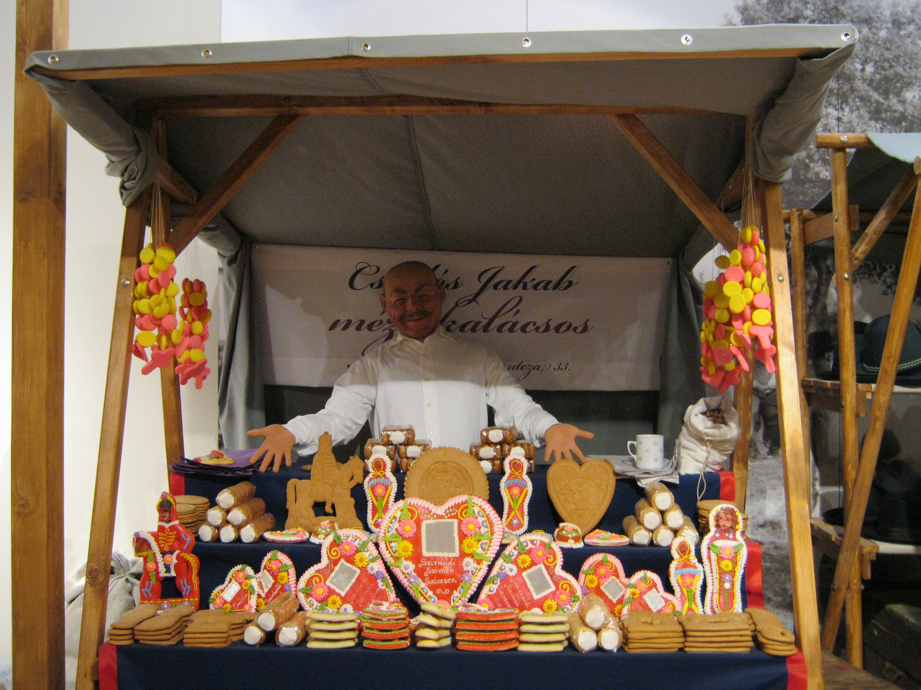 Nyilvános 1042 | 1468 | Nyíregyháza, Benczúr tér 21. Jósa András Múzeum | Magyarország egyik legrégibb múzeumát Dr. Jósa András alapította 1868-ban, akinek ma nevét viseli. Az állandó kiállítás színes részlete igazi vásári hangulatot idéz. A látványt a vásári nyüzsgés hangjai, az árusok rímes kínálgatása egészíti ki, teljes élményt adva a látogatónak. Felh. irod.: Látnivalók Szabolcs-Szatmár-Bereg megyében. Miskolc, Well-PRess, 1999 http://jam.nyirbone.hu A fénykép 2010 augusztus elején készült. |