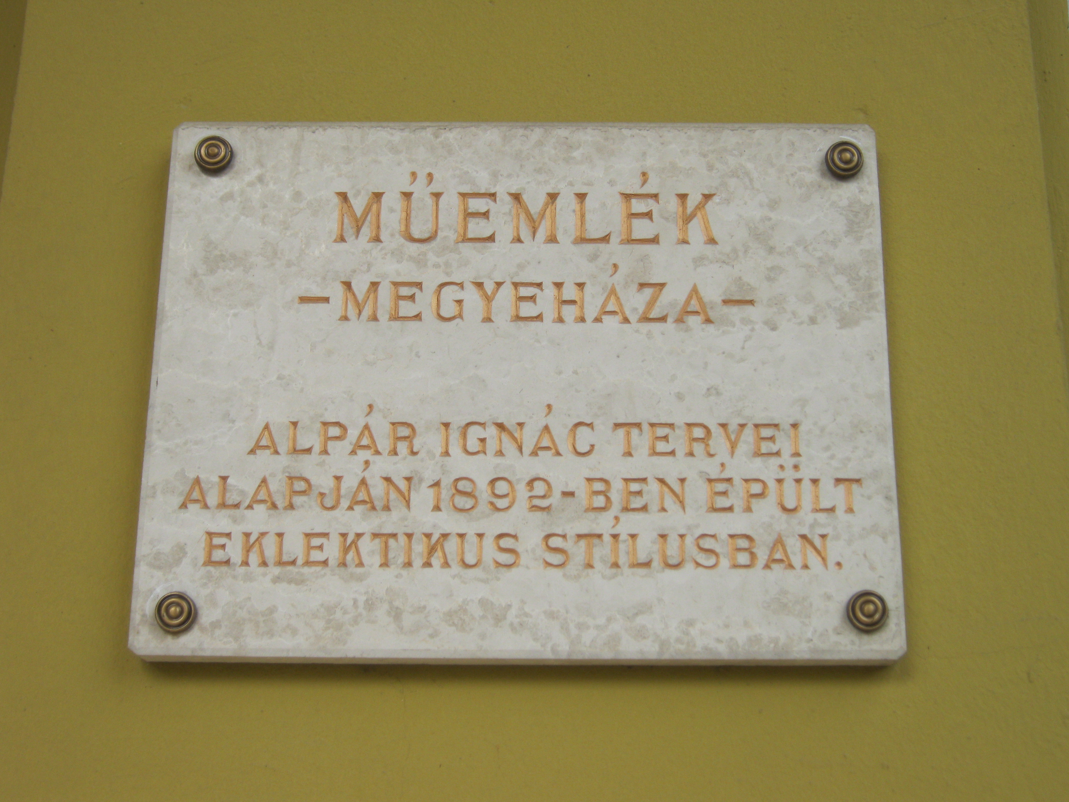 Nyilvános 986 | 1453 | Nyíregyháza, Hősök tere 5. Megyeháza | Az eklektikus stílusú megyeháza 1891-1892-ben, Alpár Ignác tervei szerint épült. Homlokzatát Szabolcs vezér és az államalapító István király szobrai díszítik. Az épületplasztikák és díszítmények Verán József munkái. Nyíregyháza 1876-ban lett megyeszékhely, korábban Nagykálló töltötte be ezt a szerepet. A megyeháza épületében volt a még Nagykállón megalapított megyei múzeum első otthona. Dolgozott itt dr. Jósa András, az intézmény létrehozója, aki kitűnő orvosként régészettel is foglalkozott, őt az 1910-es évektől dr. Kiss Lajos néprajztudós váltotta fel. Felh. irod.: Látnivalók Szabolcs-Szatmár-Bereg megyében. Miskolc, Well-PRess, 1999 Margócsy József: Utcák terek emléktáblák 3. Nyíregyháza, Városi Tanács, 1989 A fénykép 2010 augusztus elején készült. |