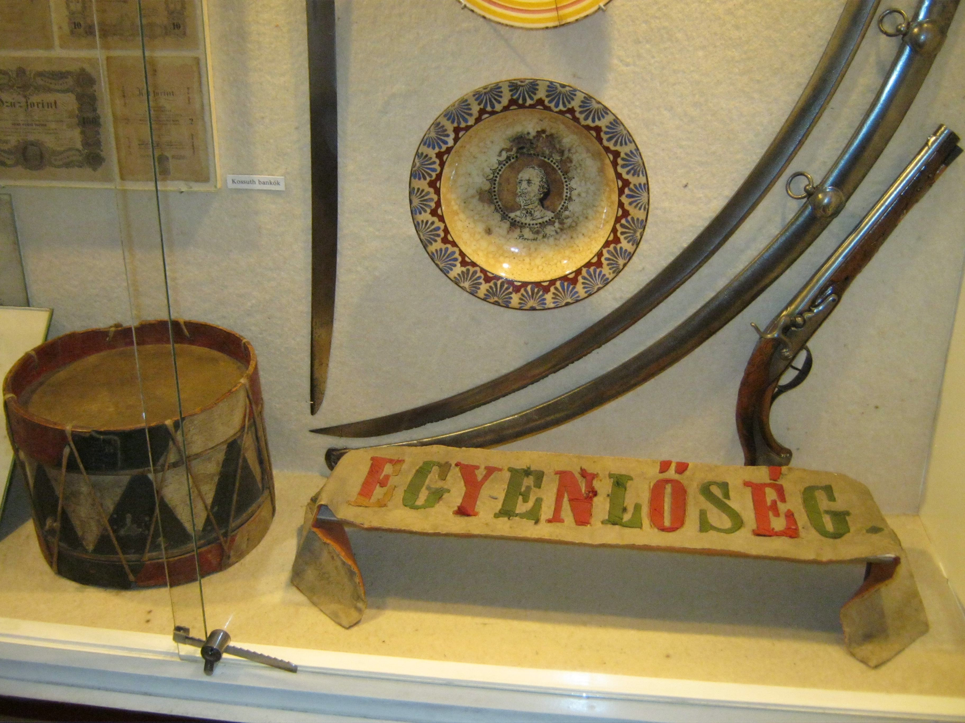 Nyilvános 967 | 1361 | Nyírbátor, Károlyi utca 21. Báthori István Múzeum | A minorita kolostor épültét 1959-ben kapta meg a múzeum. Első igazgatója, Szalontai Barnabás áldozatos munkája nyomán két év múlva már meg is nyílhatott benne az első kiállítás. A képen 1848/49-es relikviák láthatók. Felh. irod.: Látnivalók Szabolcs-Szatmár-Bereg megyében. Miskolc, Well-PRess, 1999 www.nyirbim.hu |