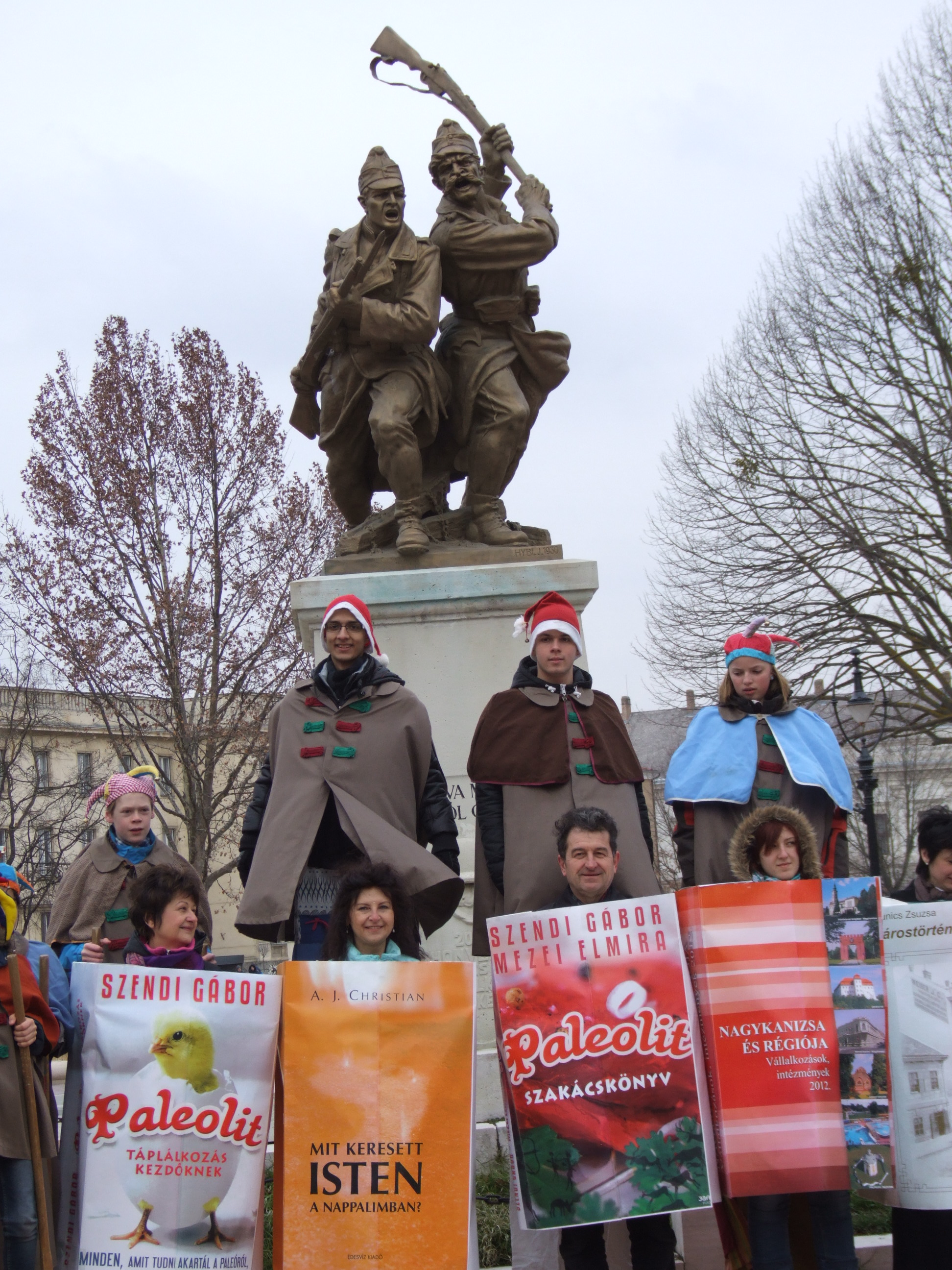 Nyilvános 772 | 1194 | 2013. február 9. A farsangi fánkfesztiválra készülve felhívásban kértük olvasóinkat, hogy öltsék magukra kedves könyvüket. Egy „könyvespolcnyi” jelentkező vette magára kedves olvasmányát, az ő vonulásukról készültek ezek a képek. A környezetükben néhol láthatók a Nagykanizsai Gólyalábasok, akik szintén a könyvtárhoz kötődnek. A „felvonuló kötetek” a könyvtár épületében még megtekinthetők. | |