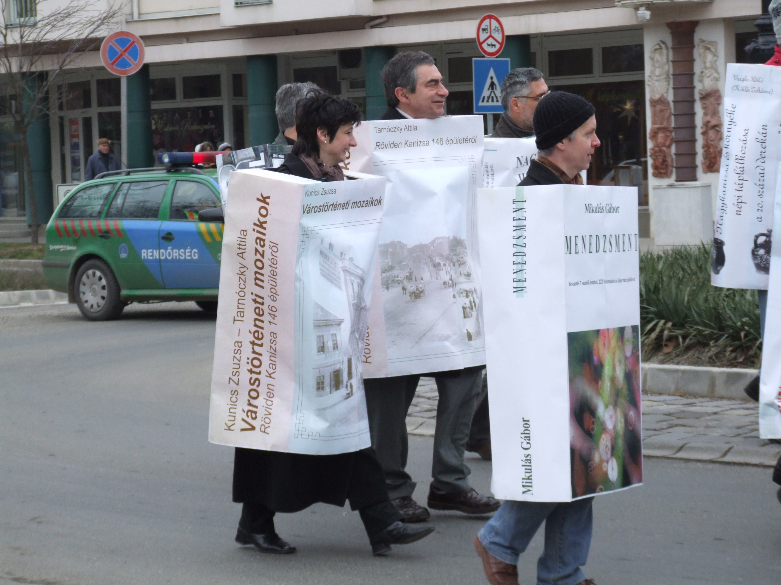 Nyilvános 966 | 1293 | 2013. február 9. A farsangi fánkfesztiválra készülve felhívásban kértük olvasóinkat, hogy öltsék magukra kedves könyvüket. Egy „könyvespolcnyi” jelentkező vette magára kedves olvasmányát, az ő vonulásukról készültek ezek a képek. A környezetükben néhol láthatók a Nagykanizsai Gólyalábasok, akik szintén a könyvtárhoz kötődnek. A „felvonuló kötetek” a könyvtár épületében még megtekinthetők. | |