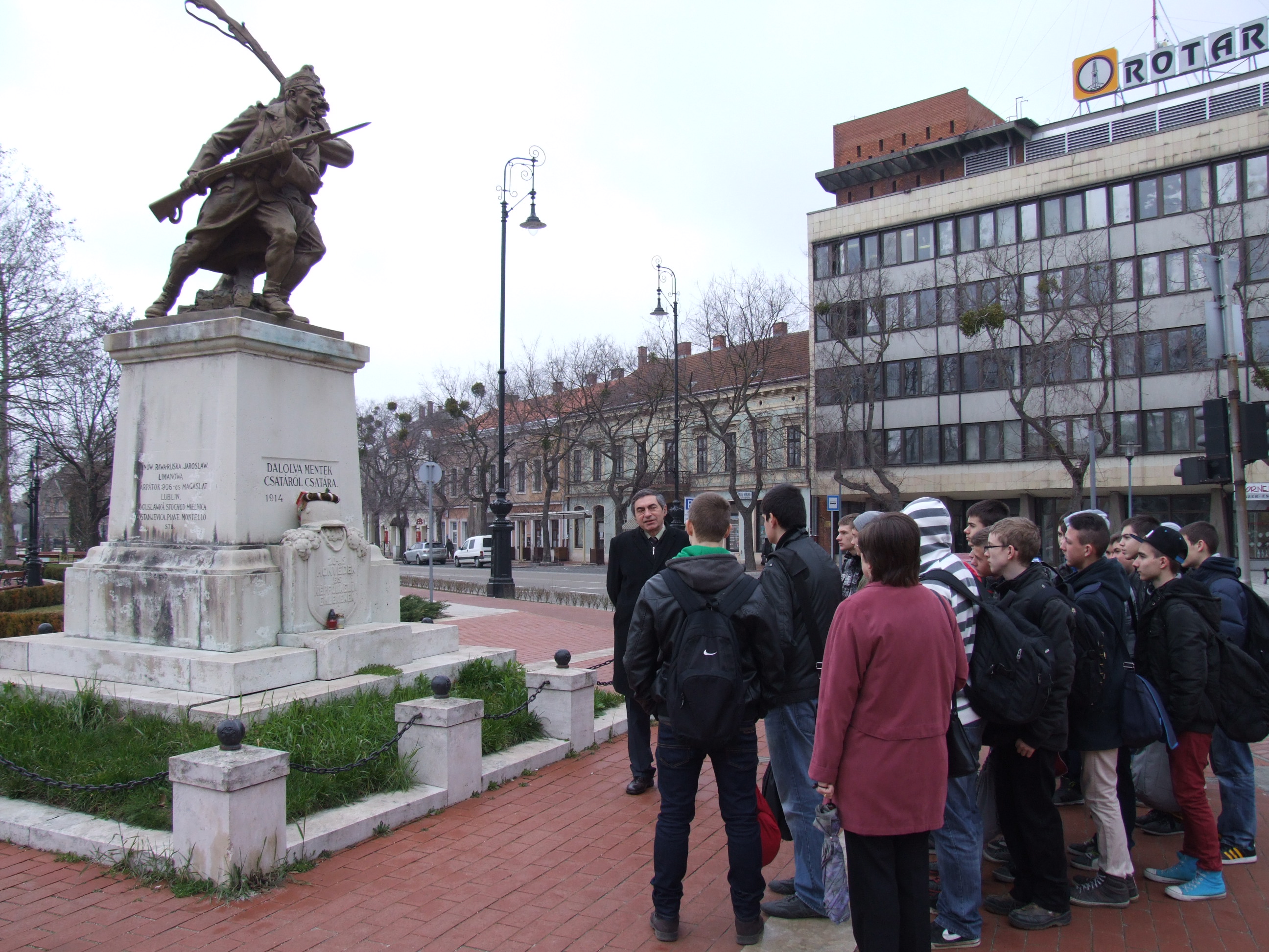 2014.03.03. Cserháti iskolások (9.d) a Harmincados háznál (Sóhivatal)