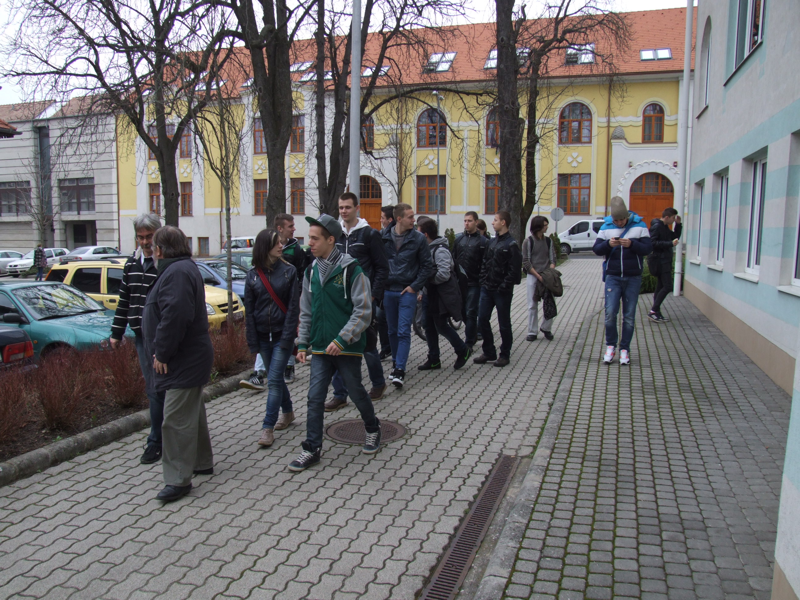 2014.03.05. Cserháti iskolások (10.c) a Korona szállónál 01.JPG