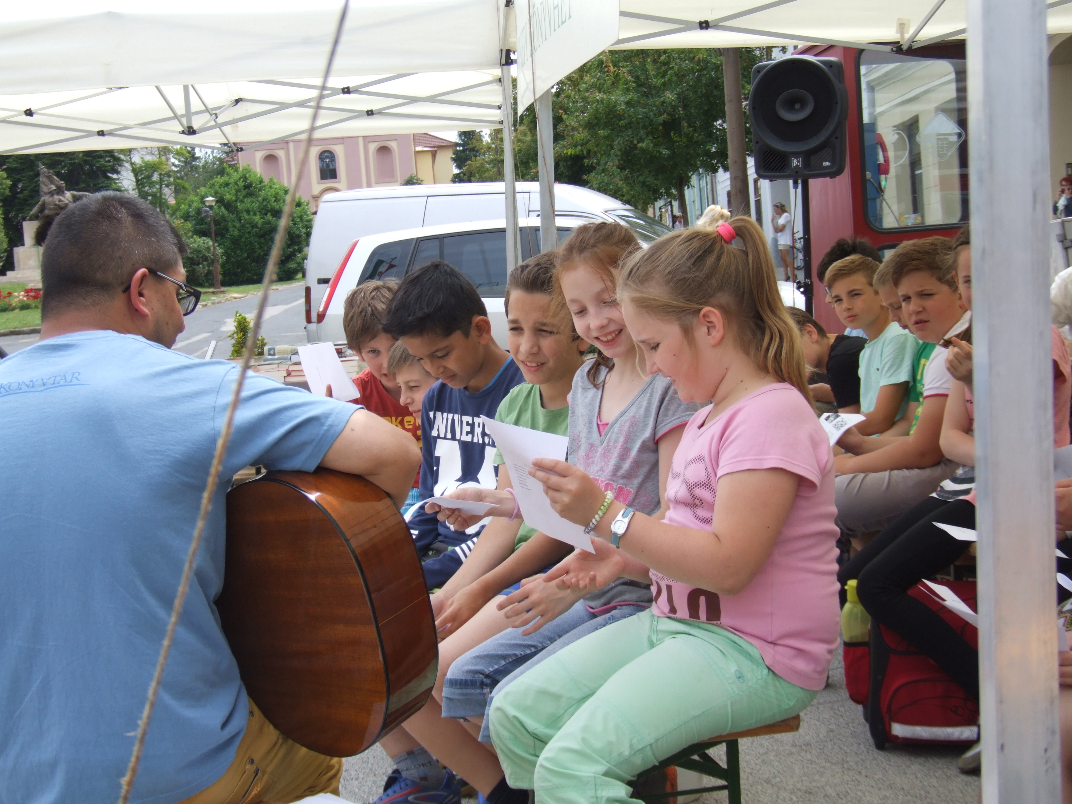 2016.06.09. Ünnepi könyvhét sátor Fenyvesi Attila dalt tanít diákoknak DSCF5722.JPG