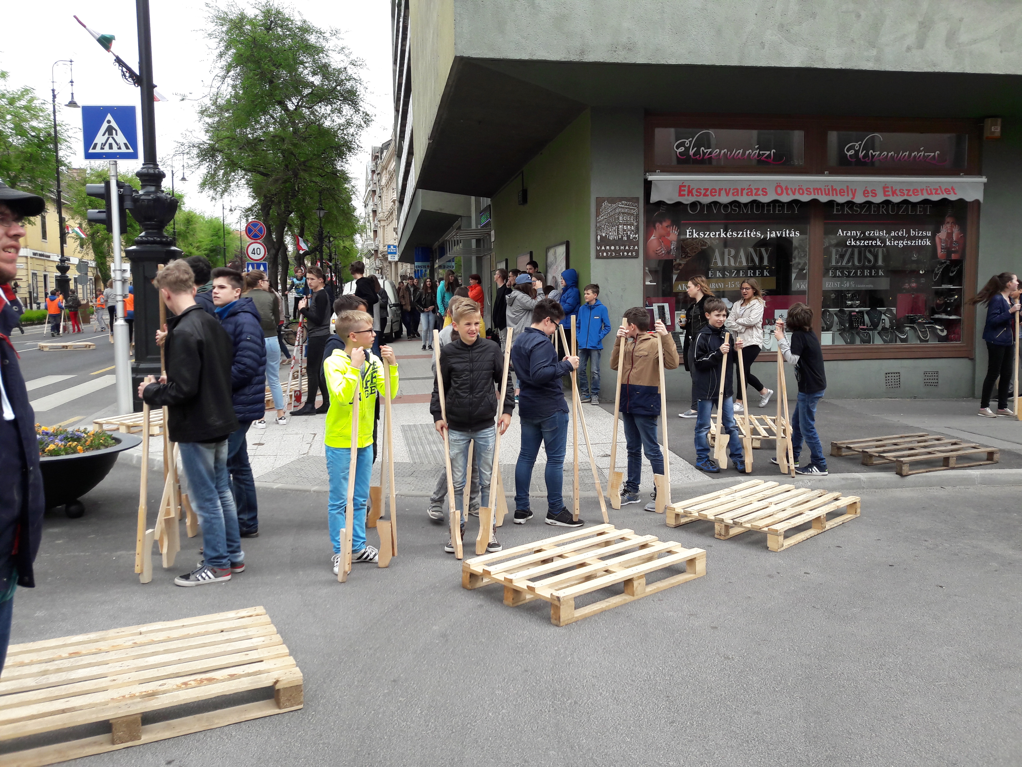 2017.04.27. Tömeges gólyalábra állás a Fő út - Ady u. kereszteződésében