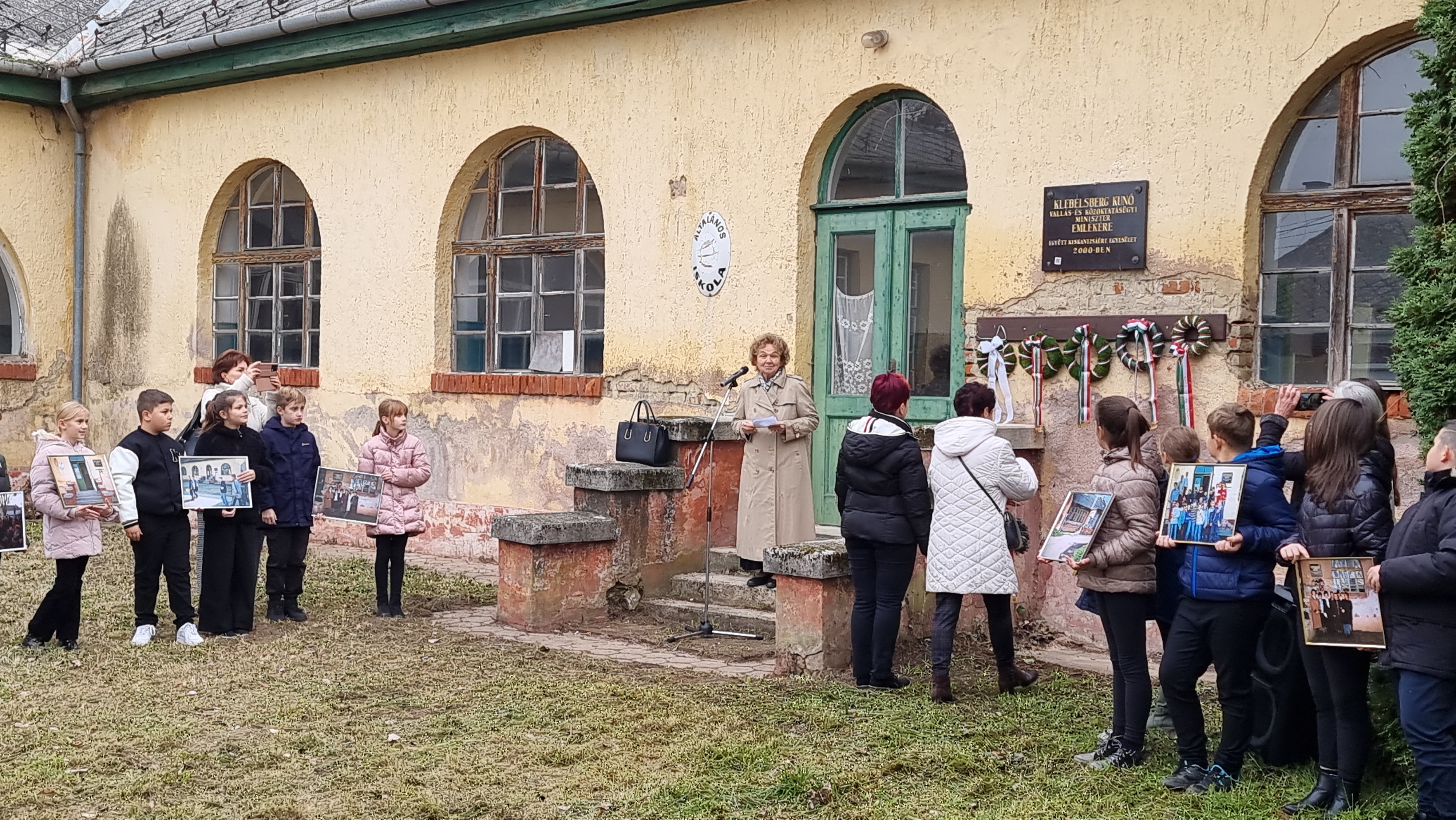 2025.11.11. Klebelsberg Kunó emléktábla koszorúzás és QR-kód felragasztás